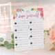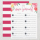 Designad för att matcha våra Rosé Garden vinprovning bröllopsdusch inbjudningar, korten har livfullt färgade akvarellblommor med två klickande vinglas högst upp och "vinpoängkort" i rosa handskrivna bokstäver. Utrymme nedan för provningsanteckningar och betyg på åtta viner.