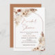 Falsk rose gold modern kalligrafi bröllopsdusch inbjudan i en bohemisk stil med två vackra naturliga och terrakotta blommiga arrangemang med pampasgräs och en terrakotta båge.