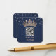 Simplify birthday party RSVP responses with chic modern QR Code enclosure cards. This template is set up for a quinceañera's 15th birthday celebration, but is simple to customize for a Sweet 16 or princess party. The colors and font styles can be easily changed with the Zazzle Design Editor tool. The navy blue and rose gold design features a chic gradient background with dark midnight blue edges, sparkly stars, a pretty faux foil princess crown and elegant simple typography. Please note that the rose gold is printed color, not metallic foil. To make your own QR code using the generator, simply type the website URL into the template. By scanning the code with their phones, guests are sent directly to the Quinceañera website to reply to the invitation. An online rsvp process reduces the chance that cards will be lost in the mail. You can also ask for more detailed information, such as meal choices, food allergies, dietary requirements and song requests. This unique rsvp enclosure card makes a stylish addition to a teen girl's Mis Quince Años invitation suite. Feliz Cumpleaños quinceanera! Happy fifteenth birthday!