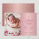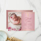 Personliggör med din speciella dop eller kristningsfoto och tackmeddelande i chic typografi. Med delikat guldbågar på en rose gold-bakgrund.
