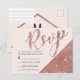 Elegant, chic och glamourös falskt tryckt rose glittersekvens hörn och rose gold skrift på en ljus rosafärgad bakgrund, RSVP vykort. Denna klassiska och sofistikerade design är perfekt för alla stiliga och trendiga evenemang, inklusive bröllop och vardagliga tillfällen. Personifiera med ditt eget meddelande på framsidan samt en anpassad monogram initial på baksidan. Allt foto print design.