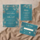 Rose Gold Floral Line Art Teal Wedding Tilläggskort
