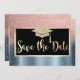 Rose Gold Glitter Blå Examen Save The Date Spara Datumet
