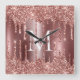Rose Gold Glitter Drips Monogram Personalized Fyrkantig Klocka
