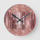 Rose Gold Glitter Drips Monogram Personalized Wall Rund Klocka