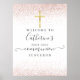 Med elegant rose gold glitter och en enkel guldkors, denna snygga första nattvarden lunch välkomstskylt kan anpassas med din speciella evenemangsinformation. Designad av Thisisnotme©