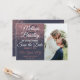 Glamourösa, snygga och eleganta falska tryckta gnistrande rose gold glitter på marinblå, Save-the-Date bröllopskort. Denna klassiska och sofistikerade design är perfekt för det trendiga och stiliga paret som gifter sig. Personifiera med ditt eget meddelande på framsidan samt en anpassad monograminitial på baksidan. Allt foto tryck design.