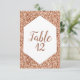 Rose Gold Glitter Konfetti Geometrisk ramdesign med Rose Gold Folie Bokstäver. Perfekt för ett elegant eller glamouröst bröllop. Bordnummer Platskort kort med trendig Handskriven Script stil! ~ Kolla min butik för att se hela brölloppskollektionen med denna design!