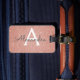 Rose Gold Glitter Monogramnamn och initial Bagage Tag. Denna väska taggen är perfekt för Tillbaka till skolan, arbete eller resor. Den rosa bagagelappen är också en bra födelsedagspresent för bröllop, födelsedagar, bröllops shower, smekmånader eller för en möhippa. Vänligen kontakta designern för anpassade matchande artiklar.