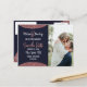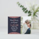 Elegant, chic och modern falskt tryckt rose gold glitter och rose gold folie cirkulärt färgblockutskärning på marinblå och falskt rose gold borstad script text, Save-the-Date bröllopskort. Denna klassiska och sofistikerade design är perfekt för det trendiga och stiliga brudparet. Personalisera med ditt eget meddelande på framsidan samt en anpassad monograminitial på baksidan. Allt foto print design.