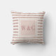 Trendig personlig rose gold glitter och vit rand kudde med en elegant rosa fyrkant och rose gold initialer monogram. Designad av Thisisnotme©