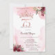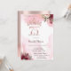 Elegant glitter crown and flowers on rose gold glitter ombre party invitation.