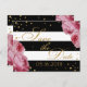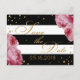 Rosa rosor över svart och vit bakgrund med guld glitter-effekt konfetti modern blomsterlig spara datum postkort.