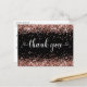 Rose Gold Glitter Svart Sweet 16 Hjärtan Tack Vykort