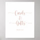 Denna rose gold kalligrafi kort och present skylt är perfekt för ett rustikt bröllop eller bröllopsfest. Den enkla och eleganta designen har klassisk och fancy script typografi i rose gold och vit. Gör raden med text längst ner på skylten till din egen genom att inkludera datumet, brudens och brudgummens namn eller ett kort meddelande som "Tack". Denna skylt kan komplettera ett bröllop, valfri händelse eller fest.