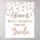 Råd och lyckönskningar till bruden skylt för bröllopsfest i en rose gold konfetti-mönster.
