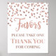 Favor-skylt för baby shower, bröllopsfest, födelsedagsfest eller bröllop i ett rose gold-konfettimönster.