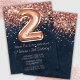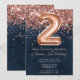 Rose Gold Navy Blue 2-års födelsedagsinbjudan och rose gold elegant modern 2-års födelsedagsinbjudan för en 2-årig flicka med modernt manus skrivande och roliga folieballonger.