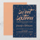 Rose Gold Navy Sweet 16 Glitter Konfetti Inbjudningar