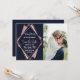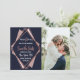 Elegant, chic och modern med en retro-känsla, falskt tryckt rose gold geometrisk diamantformad kontur på dammig blå, mauve och rosafärgad diamantutskärning, Spara-datum bröllopskort. Denna klassiska och sofistikerade design är perfekt för det trendiga och stiliga brudparet. Personifiera med ditt eget meddelande på framsidan samt en anpassad monograminitial på baksidan. Allt foto print design.