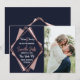 Rose Gold Navyblå Mauve Geometrisk Spara Datum Inbjudningar
