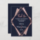 Elegant, chic och modern med en retro-vib, falskt tryckt rose gold geometrisk diamantformad kontur på navyblå, mauve och rosa diamantutskärning, Tack-kort. Denna klassiska och sofistikerade design är perfekt för alla stilrena och trendiga evenemang, inklusive bröllop och vardagliga tillfällen. Allt fototryck.