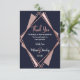 Elegant, chic och modern med en retro-vib, falskt tryckt rose gold geometrisk diamantformad kontur på navyblå, mauve och rosa diamantutskärning, Tack-kort. Denna klassiska och sofistikerade design är perfekt för alla stilrena och trendiga evenemang, inklusive bröllop och vardagliga tillfällen. Allt fototryck.