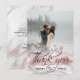 Tack era gäster med dessa vackra, unika och enastående vykort. Falskt rose gold penseldrag med vacker skrivstil tack. Bakgrund i ljusgrå marmor med rose gold-folie. Personalisera dem genom att lägga till brudens och brudgummens namn och datum för bröllop eller årsdag med foto / bild. Baksidan av kortet har valfritt meddelande