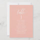 Hjälp dina gäster att hitta sitt bord med dessa eleganta moderna sittplanskort med gästernas namn. Dubbelsidiga kort så att gästerna kan leta från både framsida och baksida efter sina namn. Tydligt utrymme runt omkring ger dig friheten att använda klämmor eller hålslagning för upphängda displayer, eller använd hållare/ram för bord. Roséguld tonad bakgrund och vit text. Moderna handskrivna kalligrafidetaljer. Flera färgalternativ. Ha alla bordnummer i samma färg eller blanda färger enligt ditt events färgtema.