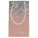Rose Gold - Rosa Rosa och Silver Glitter Skript Monogram Namn Presentpåse. Detta gör den perfekta söta 16-års födelsedag, bröllop, bröllopsdusch, årsdag, baby shower eller möhippa presentpåse för någon som älskar glam lux och chic stilar.