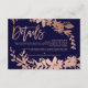 Rose Gold typografi blad blommig marinblå chic vigselsledning med handmålad lövverk. Den marinblå färgen i bakgrunden är fullt anpassningsbar