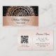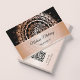 Elegant roséguld blomdamaskmandala på svart bakgrund. Den nedre delen har ett genomskinligt roségult textfält med ett anpassat namn och text i en elegant feminin stil. För kvinnliga entreprenörer, sminkartister, evenemangsarrangörer, kosmetologer, skönhetssalong...