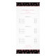 Enkel och elegant rosa guld rosa och vit professionell salong service rack kort med rose gold tass markeringar på svart bakgrund. Anpassa det med ditt namn, yrke, slogan, telefonnummer, gatuadress (på framsidan och baksidan) och upp till sex tjänster med fem beskrivningar och motsvarande priser per tjänst (tre på framsidan och tre på baksidan).