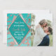 Elegant, chic och modern med en retro-vib, falskt tryckt rose gold geometrisk diamantform kontur på tealgrön och falsk rose gold-marmor med mauve, och rosa diamantutskärningar, Spara-datum bröllopskort. Denna klassiska och sofistikerade design är perfekt för det trendiga och stiliga brudparet. Personifiera med ditt eget meddelande på framsidan samt en anpassad monograminitial på baksidan. Allt foto print design.