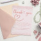 This rose gold thank you card was created to share heartfelt appreciation in a soft, elegant way. Featuring graceful script with a flowing heart and delicate confetti sparkle, it’s perfect for thanking guests after a baby shower and celebrating the love and support surrounding your little girl.