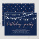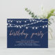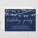Fira din speciella dag med denna stilrena moderna födelsedagsinbjudan. Denna design har vackra strängljus med en rose gold och marinblå färgtema.
