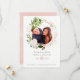 Trendigt grönska vattenfärg bröllop sparad datum med rose guld och rosenskära blommor i en geometrisk ram.