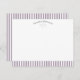 The front stays white with three open rose quartz hearts under a curved personalized name. A soft white and rose quartz striped band at the bottom connects with the matching vintage stripes on the back. The card feels modern, cute and chic, great for everyday messages or as a sweet personalized stationery piece.