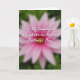 This card features a large, softly blurred flower filling most of the front, like a water lily seen through a gentle haze. The center glows in deep fuchsia and melts outward into lighter rose pink petals, creating a tender gradient that feels like an affectionate embrace ❤️. Behind it, a diffused wash of leafy green suggests a garden setting without sharp edges, keeping the mood calm and intimate. Across the middle, white cursive-style lettering sits clearly over the pinks, drawing the eye the way a warm gaze finds its way back to someone you care about. The message reads, “To My Beautiful Daughter-in-law on Mother’s Day!”, with the words stretching in a smooth line from left to right. The bright white text contrasts strongly against the soft floral colors, giving the design a gentle focus while still feeling dreamy 🌼. The flower’s glowing core and the surrounding green background remain intentionally out of focus, with the petals fading softly into the edges of the frame.