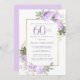 Hedra en speciell kvinna med denna eleganta och feminina 60-års inbjudan. 60:e skrivs med stor lila text. Födelsedagsfirande följer. Den hedrade gästens namn är också i lila versaler. Resten av texten är mjuk dovgrå. Detaljerna kring 60-årsfirandet är omgivna av en chic guldram som är dekorerad med lila rosor och salvia gröna blad. Även om det är en traditionell design, ger den öppna och luftiga botaniska bladverken och texten den en modern känsla. Baksidan av inbjudan är en mjuk lila färg. Tyvärr är 60-siffrorna inte redigerbara. Om du behöver ett annat år, är jag glad att göra en anpassad design åt dig.