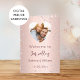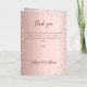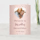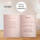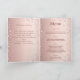 En falsk roséguld gradientbakgrund med rosa diamanter. Välkomsttext, foto, program, meny och ett tackkort på baksidan.