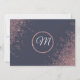Glamourösa, chic och eleganta falska tryckta gnistrande roséguldglitter på marinblå, Spara-datum bröllopskort. Denna klassiska och sofistikerade design är perfekt för det trendiga och stiliga brudparet. Personifiera med ditt eget meddelande på framsidan samt en anpassad monogram-initial på baksidan. Allt fototryck design.