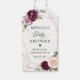 Roséguld glitter lila rodnad blomster baby shower presentetikett