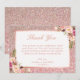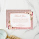 Roséguld glitter rosa blommig tack kort