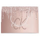 En roséguld falskt metallisk bakgrund med falska roséguld glitterdroppar, målarfärg som droppar. Anpassa och lägg till ett namn och initialer för monogram. Texten: Namnet skrivs med en modern handskriven stils skrift. Perfekt för födelsedagar, baby shower och bröllops shower.