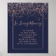 Roséguld konfetti marinblått bröllop minnestavla poster
