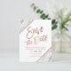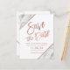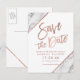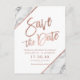 Rosé guld typografi på anpassningsbar vit roséguld vit marmor färgblock, och falska roséguld geometriska ränder chic save the date bröllop , perfekt för elegant, stilfullt bröllop,