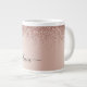 Roséguld - Röda Rosa Glitter Metall Monogram Namn Jumbo Mugg