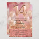 Roséguld rosa 14-års inbjudningskort för flickor