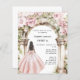 Roséguld rosa blommig valv inbjudan till Sweet 16-